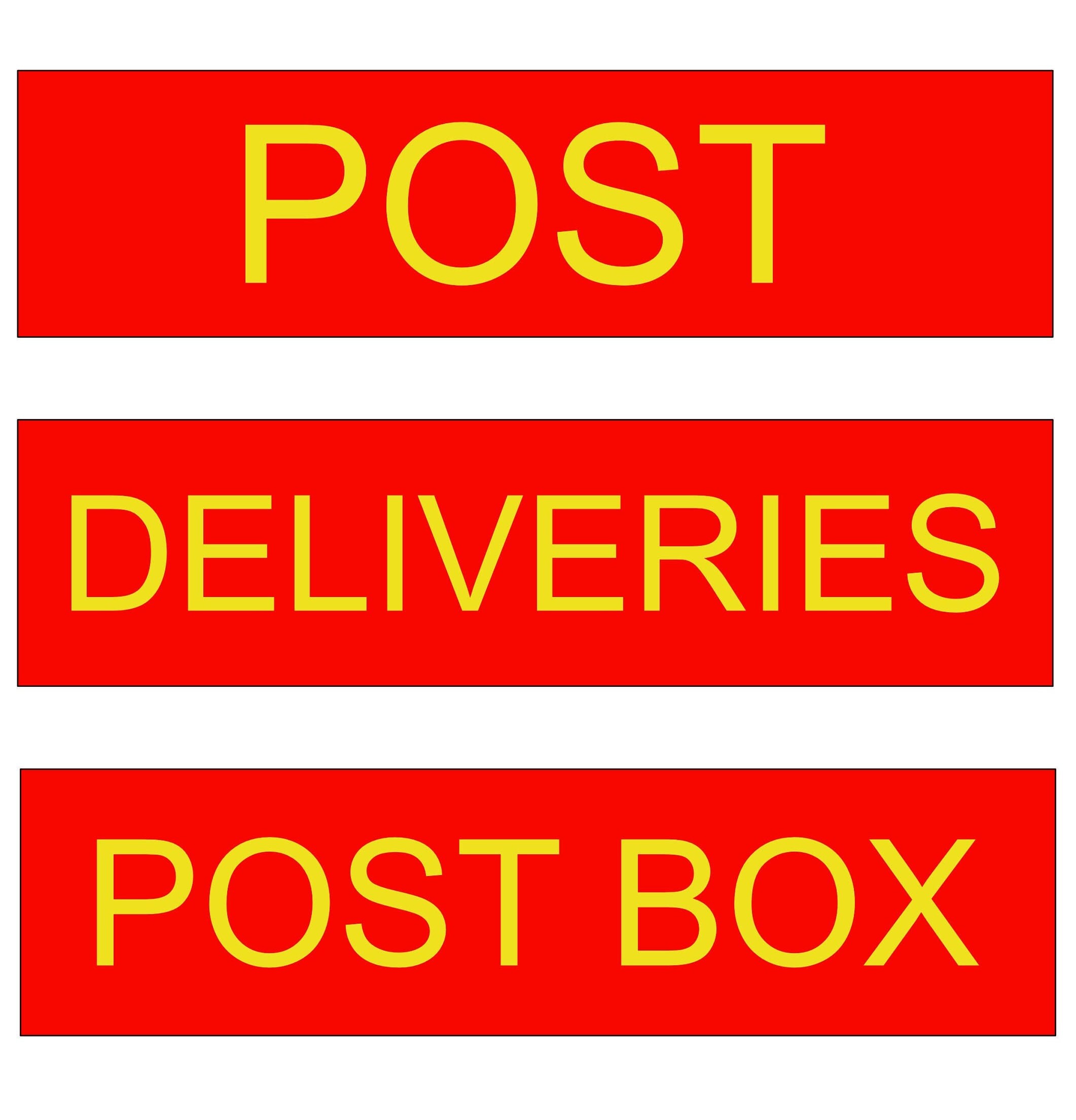 Post box sign aluminium strong double sided sticky pads easy to fit gate wall door hotel school office