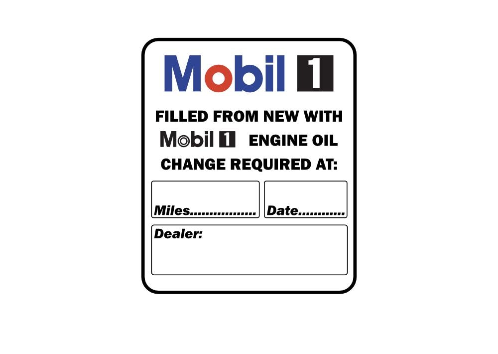 Mobil one filled from new service oil change sticker car engine porsche garage vinyl stickers x 1 decal laminated