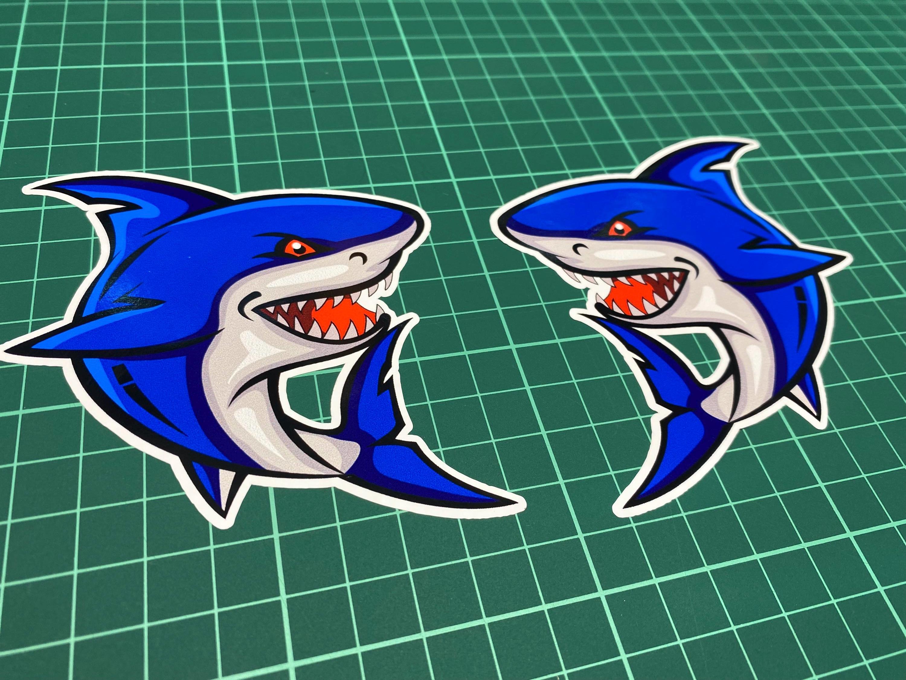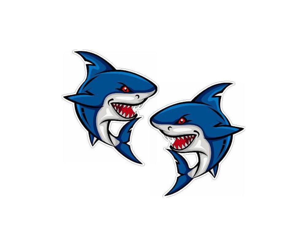 Angry shark vinyl stickers x 2 decal window laptop weather proof