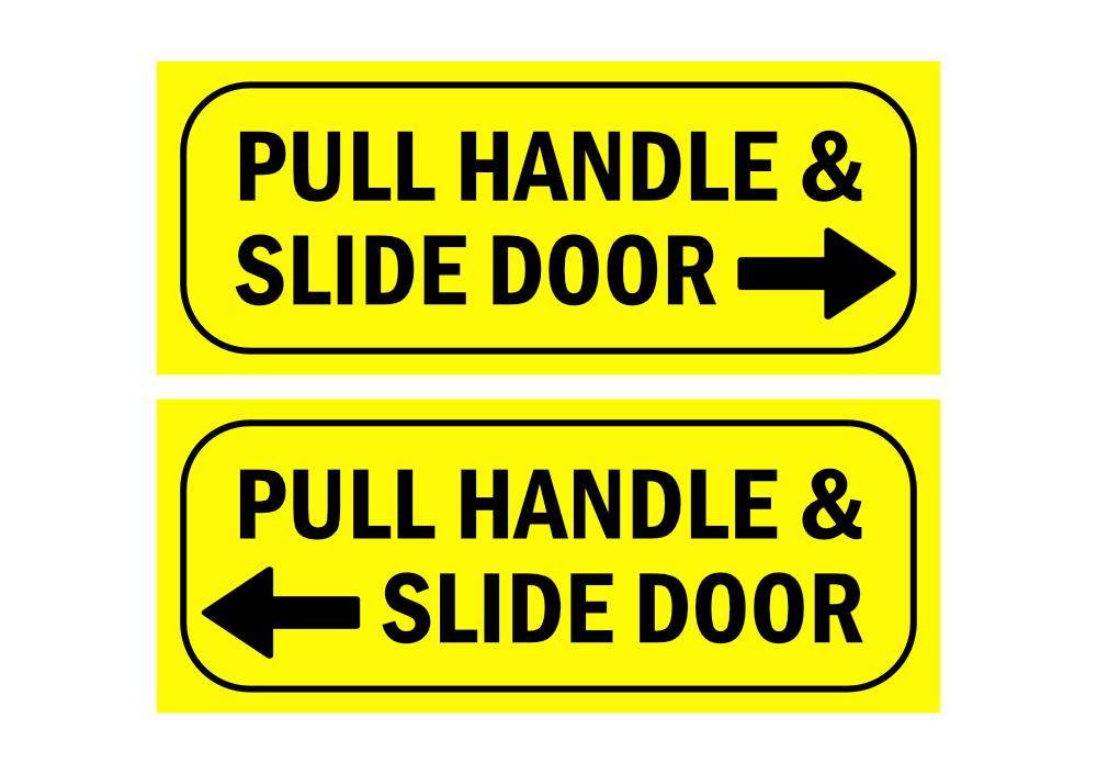 Pull handle and slide door vinyl stickers x 2 left right decals taxi door fire exit office patio door