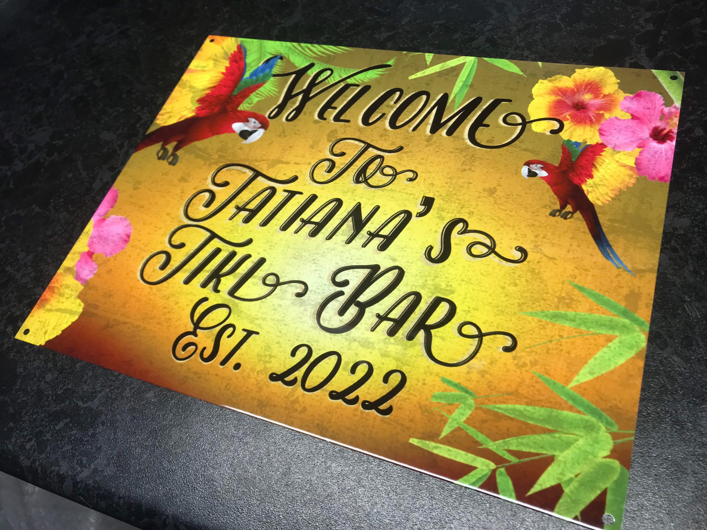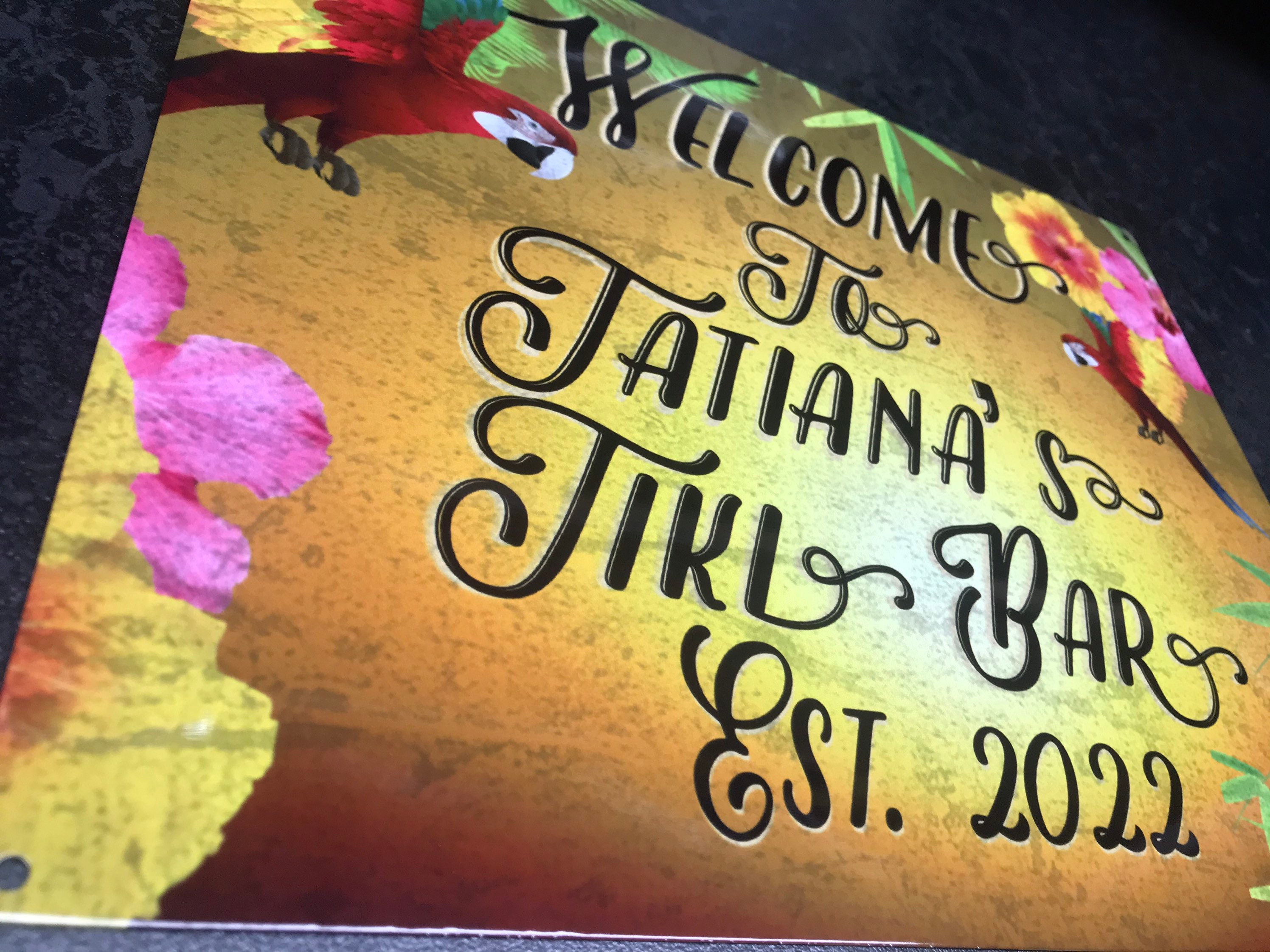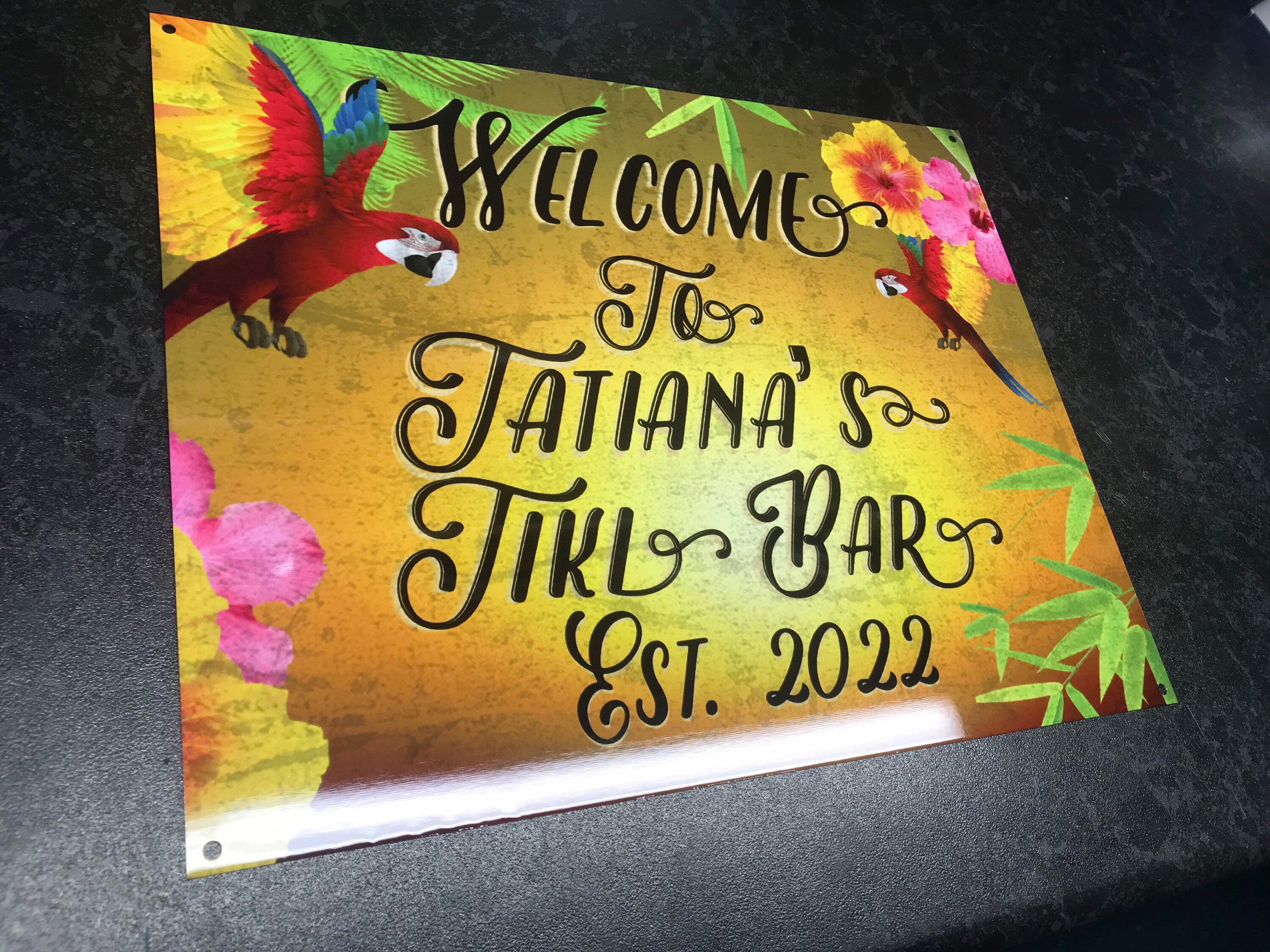 Pub bar sign personalised plaque any name and date weather proof pre drilled great gift birthday xmas high gloss tiki bar